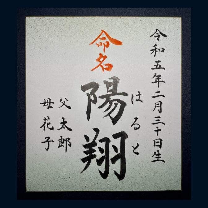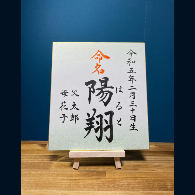 お子様のお名前・生年月日、ご両親のお名前を毛筆で揮毫いたします。